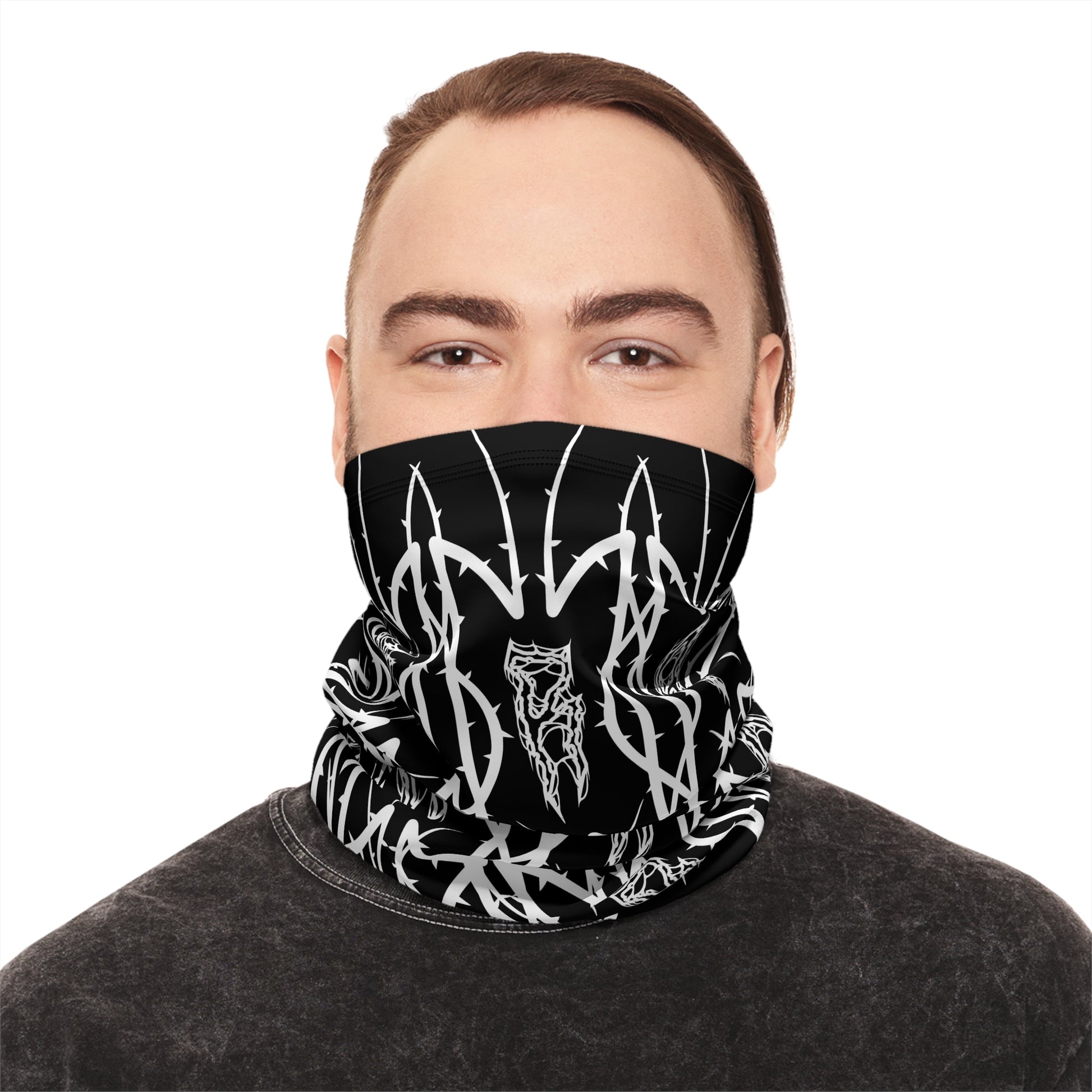 Alliance Winter Drawstring Neck Gaiter — Black Gothic Wolf Pattern Face Mask