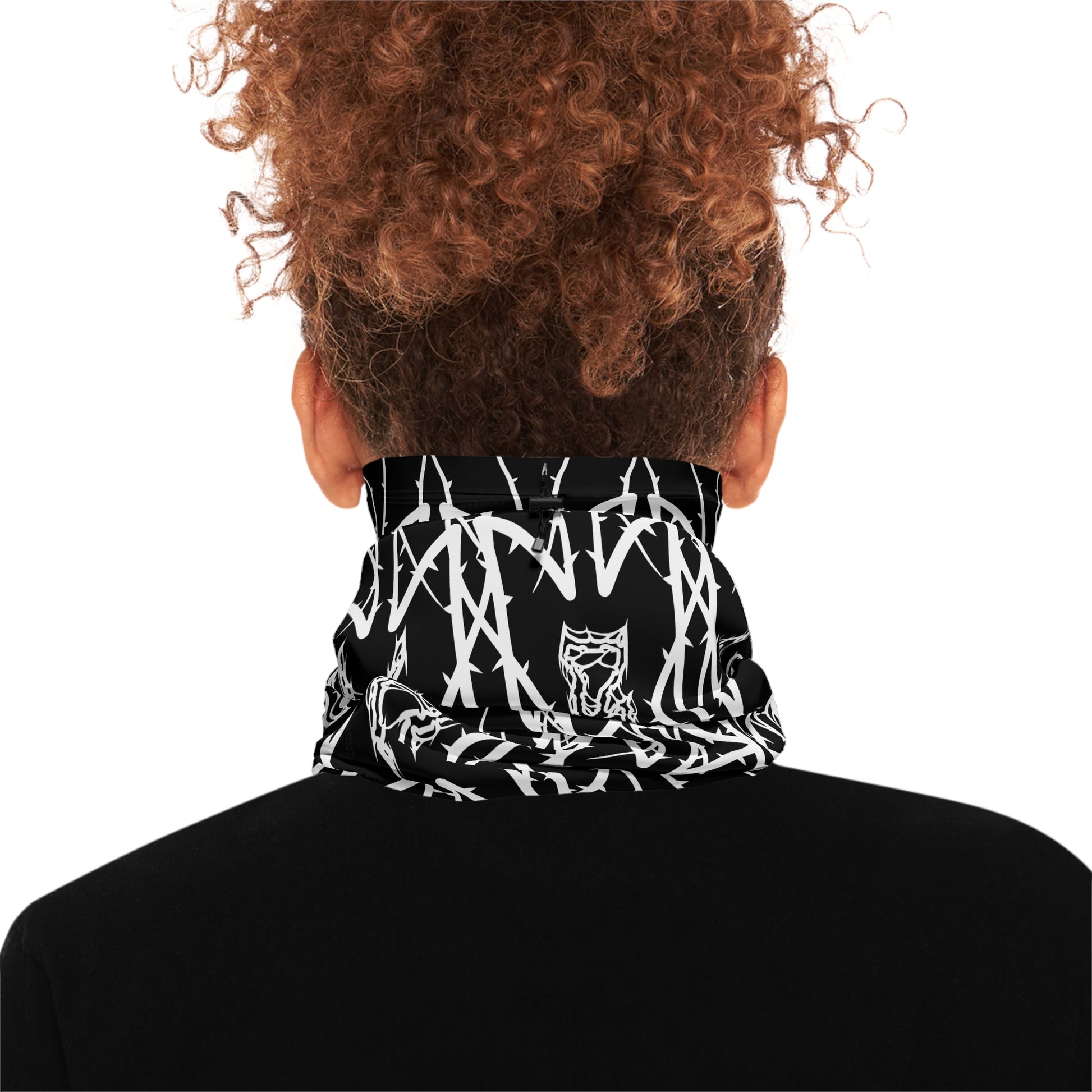 A cozy, adjustable winter neck gaiter crafted for cold-weather wanderers who value function and bold style. The fleece-like polyester blend wraps snugly around the neck, blocking wind and holding heat while the elastic drawstring lets you tailor coverage — wear it low for breathability or cinch it up into a hood when the storm closes in. The striking high-contrast pattern gives a modern, slightly edgy feel that pairs with layered outdoor gear or street-ready winter coats. Lightweight yet insulating, it moves with you on hikes, city walks, or snowy commutes and slips easily into a daypack when the weather lightens.
